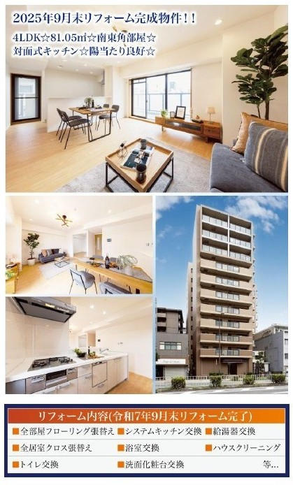 特色 | 2000年11月建築/11階建の5階部分/南東角部屋/2面バルコニー(南・東)/専有面積81.05uの4LDK/トランクルーム有り(3.81u)/2025年9月リフォーム完成/オートロック/宅配ボックス/ファミリーマートまで徒歩1分/松島公園まで徒歩1分/九条ナインモール商店街まで徒歩3分/みずほ銀行まで徒歩3分/スーパー玉出まで徒歩3分/大阪メトロ中央線「九条」駅徒歩7分/阪神なんば線「九条」駅徒歩7分/大阪メトロ長堀鶴見緑地線「ドーム前千代崎」駅徒歩8分/大阪メトロ千日前線・長堀鶴見緑地線「西長堀」駅徒歩12分/※塵芥処理料:月額410円/ | |||||||||||||||||