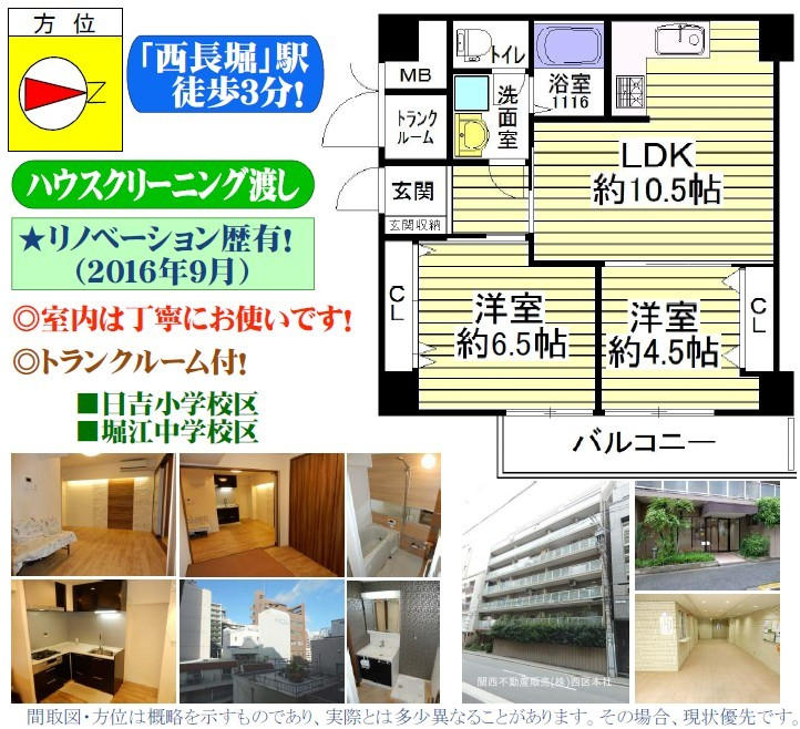 | 11階建の5階部分/東向きバルコニー/専有面積49.00uの2LDK/2016年9月にリノベーション歴有り/室内は丁寧にお使いです/ハウスクリーニング渡し/トランクルーム付/お買物・交通・公園・図書館・郵便局・区役所等便利な立地です/スーパーコーヨー堀江店まで徒歩2分/関西スーパー南堀江店まで徒歩4分/ファミリーマート南堀江4丁目店まで徒歩2分/セブンイレブン大阪南堀江4丁目店まで徒歩2分/ダイコクドラッグ西長堀店まで徒歩2分/スギ薬局北堀江店まで徒歩2分/日吉公園まで徒歩3分/土佐公園・土佐稲荷神社まで徒歩3分/大阪日吉郵便局まで徒歩2分/大阪市立中央図書館まで徒歩3分/西区役所まで徒歩9分/日吉小学校まで徒歩5分/堀江中学校まで徒歩2分/大阪メトロ千日前線「西長堀」駅徒歩3分・大阪メトロ長堀鶴見緑地線「西長堀」駅徒歩6分・阪神なんば線「桜川」駅徒歩6分/※ペット飼育不可/※売主の契約不適合責任免責です/ |