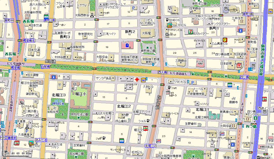 | アクセス | 地下鉄長堀鶴見緑地線「西大橋」駅徒歩1分、 地下鉄四ツ橋線「四ツ橋」駅徒歩6分、 地下鉄千日前線「西長堀」駅徒歩6分 |